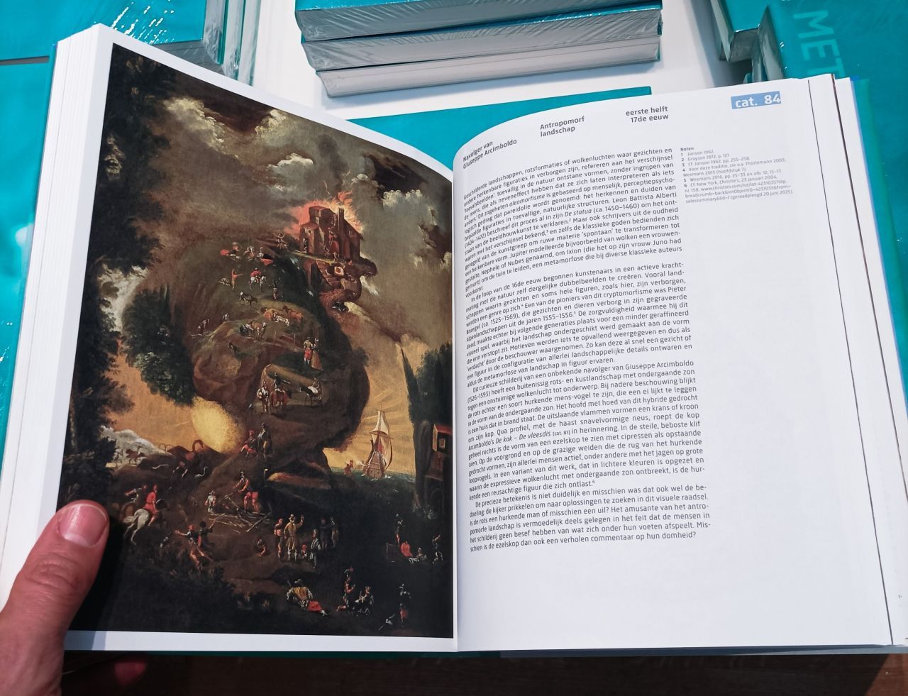 A mysterious anthropomorphic landscape by a Follower of Giuseppe Arcimboldo, Northern Italy, c. 1600-1650. Can you spot the donkey and the giant laying an egg? Can you solve the riddle of the subject’s meaning? No one has been able to figure it out so far.