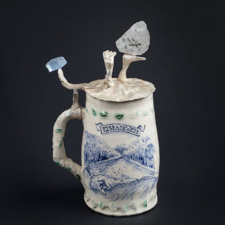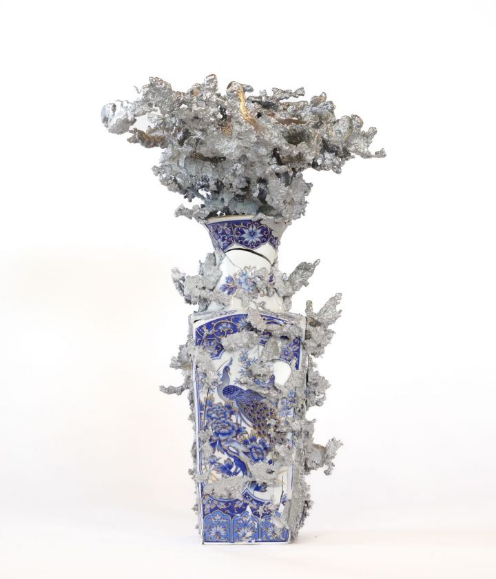 Paintings by Johann Georg Platzer (1704-1761) and Willem van Mieris (1662-1747) behind bowls by Rudolf Bott, *1956