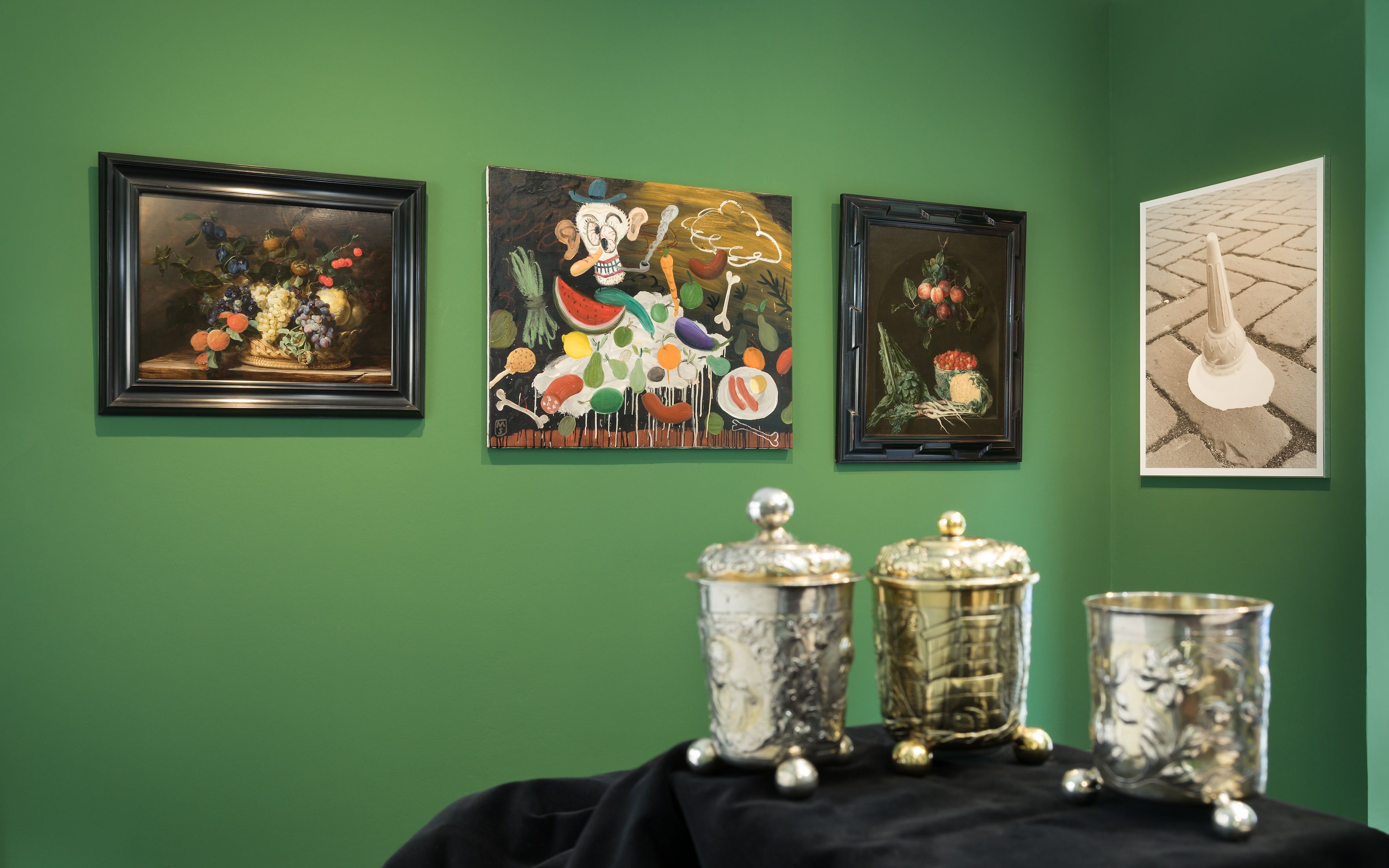 Painting by Johann Georg Platzer (1704-1761) and silver candlesticks by Rudolf Bott, *1956